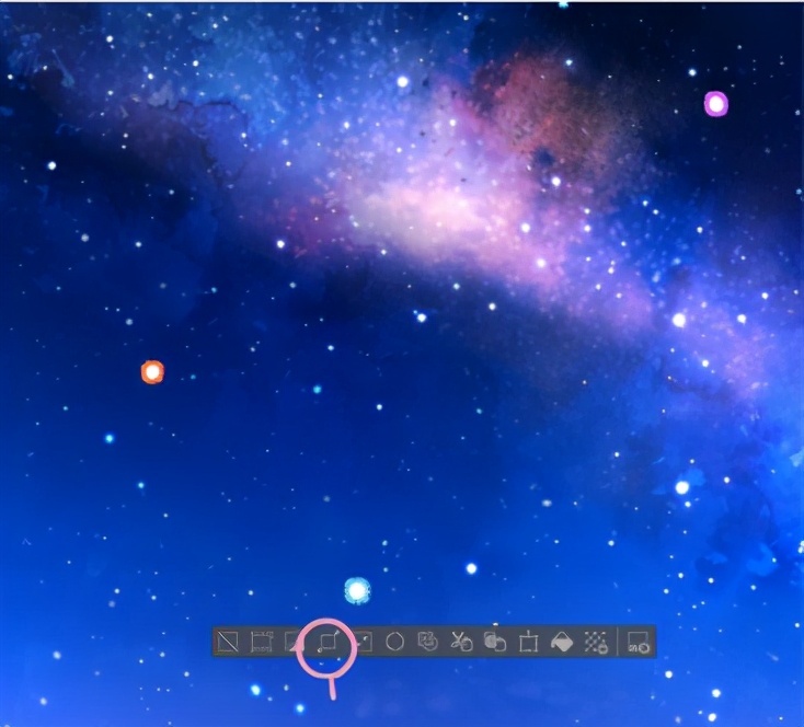 画显眼的星星。用线稿笔画出又白又大的点,右击图层,选择「从图层载入选区」,选中星星。