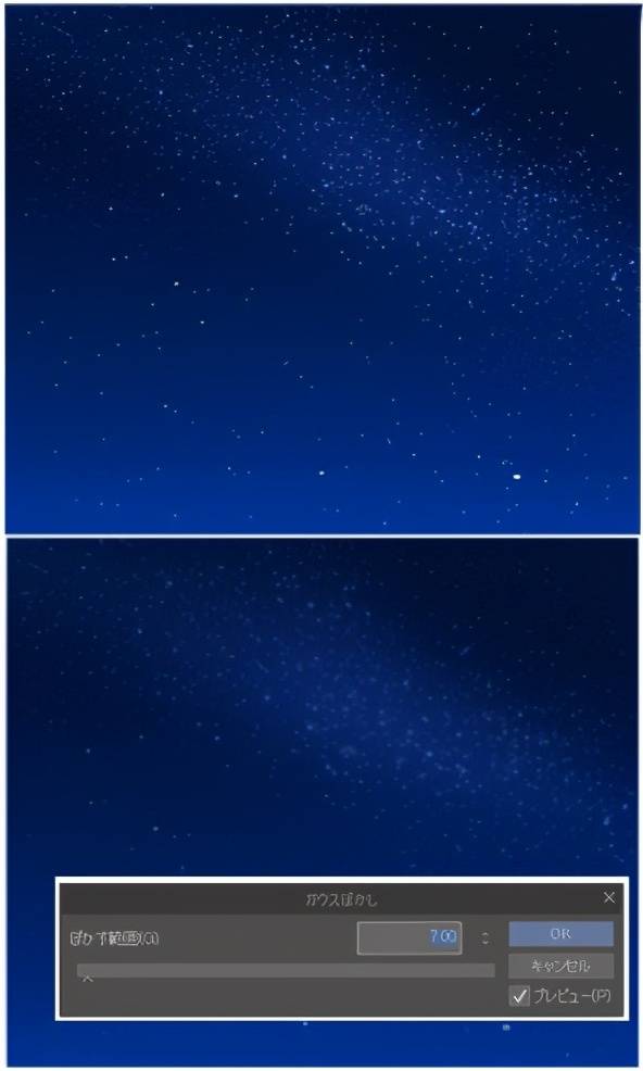 填充完的星星图层,用高斯模糊,添加闪光效果即可完成。