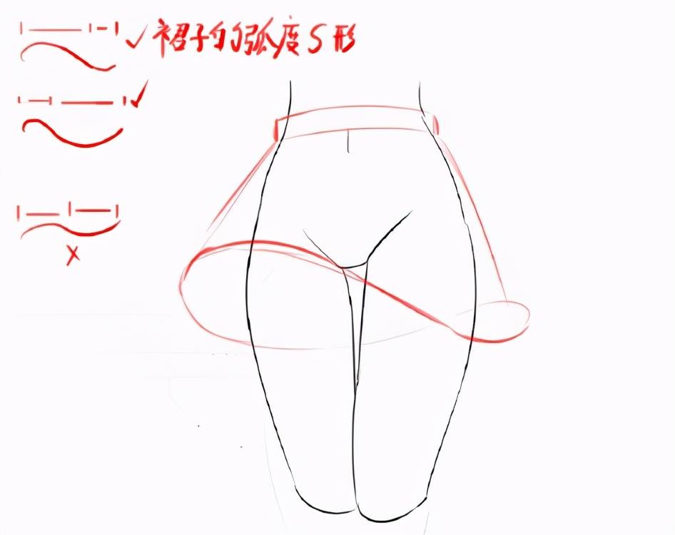 3、裙摆的褶皱会贴合裙子,透视呈放射状。